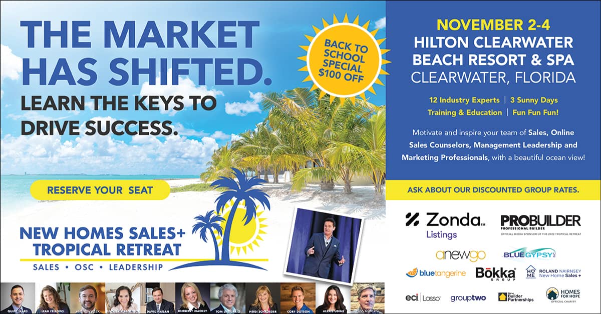 Renowned Online Sales Counselor Coach Leah Fellows and myself will give you an exciting glimpse of our proven processes and systems, that we will be teaching in depth at the upcoming Tropical Retreat in November. Learn how to create authentic urgency from OSC to On Site Sales. With the market correction, it is time to re-set your sales process to ensure that buyers don’t become complacent and fully understand not just “Why my builder, Community and Home?” but most importantly “Why now?”.