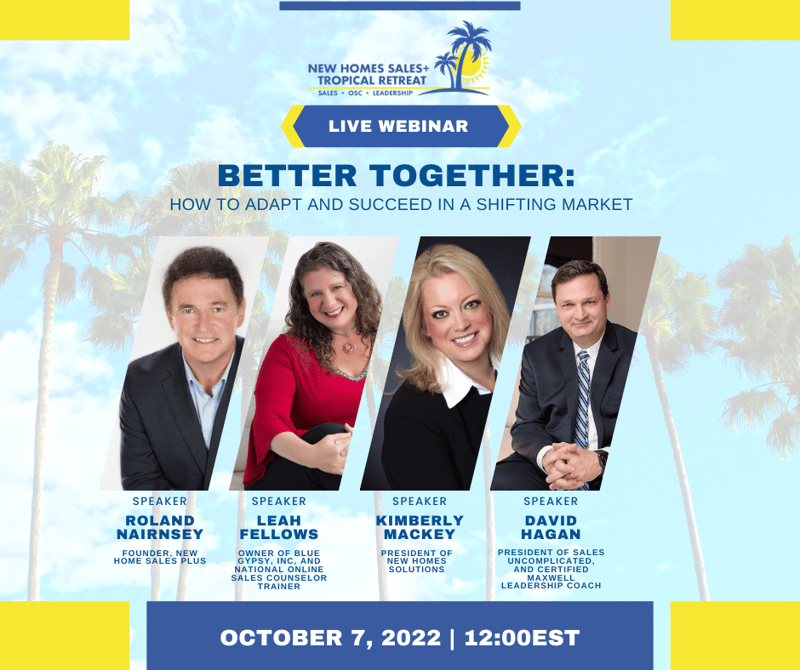 For a deeper dive into these webinar topics and for authentic New Home Sales & Online Sales Counsellor training, as well Leadership, and Marketing Coaching proven to increase conversion ratios and sales in todays market, please join Leah Fellows, Quint Lears, Myers, Barnes, Kimberly Mackey, myself and the rest of the amazing industry experts for the sales training experience of your lifetime this November 2-4.
